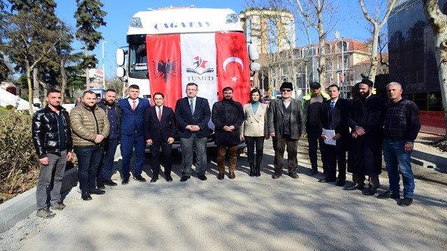 Türkiye'nin Tiran Büyükelçiliği koordinasyonunda Arnavutluk'taki Türkiye Mezunları Derneği (TÜMED) tarafından Türkiye'deki depremzedeler için jeneratör, battaniye, çadır gibi malzemelerden oluşan yardımlar toplandı.