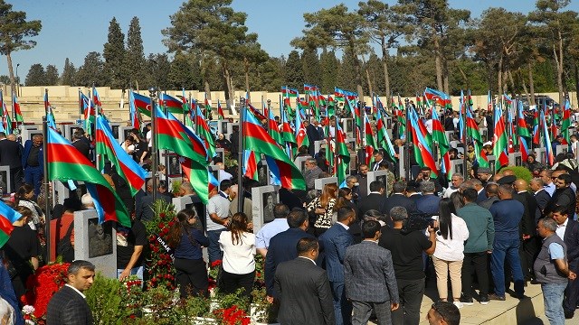 Azerbaycanlılar, 2. Karabağ Savaşı'nın başlangıç gününün yıl dönümünde şehitliklere akın etti.