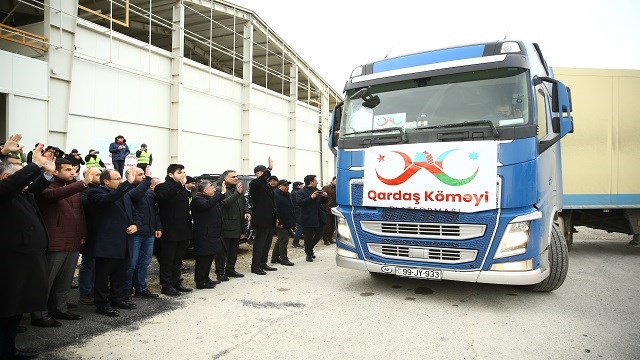 Bazı sivil toplum kuruluşlarının oluşturduğu "Kardeş Kömeği (Yardımı)" platformunun organizasyonunda toplanan giysi, battaniye, kuru gıda ve hijyen malzemelerinin yüklendiği 8 tırı Türkiye'nin Bakü Büyükelçisi Cahit Bağcı uğurladı.