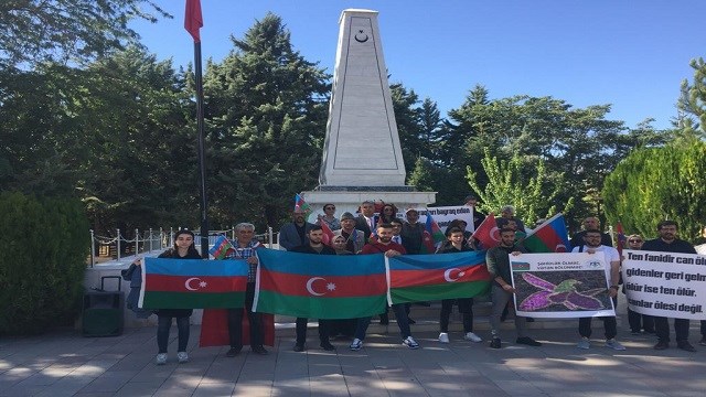 Konya'da eğitim gören Azerbaycanlı öğrenciler, ellerinde Azerbaycan ve Türk bayraklarıyla Konya Şehitliği'ne geldi. Şehitlik anıtına çelenk sunulmasının ardından sonra, Türkiye ve Azerbaycan milli marşları okundu.
