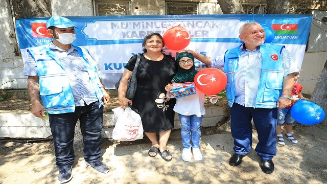 Bakü'de 1990'lı yıllarda Ermeni işgali sonrası ata yurtları Karabağ'dan göç etmek zorunda kalan Azerbaycanlılara, Türkiye Diyanet Vakfının (TDV) bu yıl "kurbanını paylaş, kardeşinle yakınlaş" sloganıyla düzenlediği organizasyon kapsamında kurban eti dağıtıldı, çocuklara oyuncak hediye edildi.