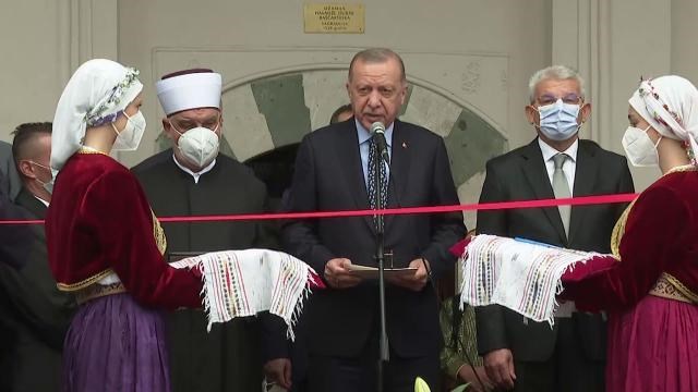 Erdoğan, Vakıflar Genel Müdürlüğünce restore edilen Başçarşı Camisi'nin açılışını yaptı.