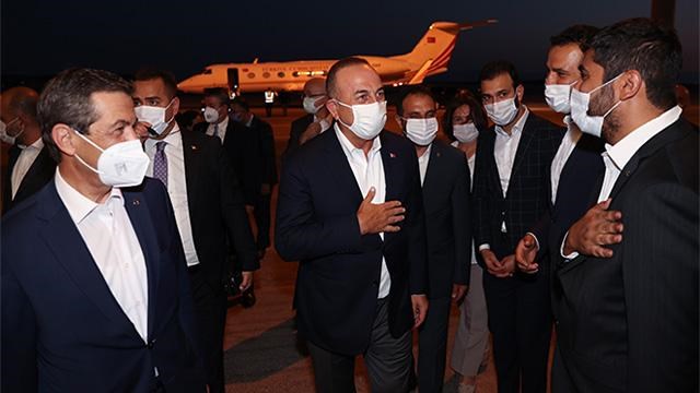 Özel uçakla saat 20.50'de Ercan Havalimanı'na gelen Çavuşoğlu, KKTC Dışişleri Bakanı Tahsin Ertuğruloğlu, Türkiye'nin Lefkoşa Büyükelçisi Ali Murat Başçeri ve diğer yetkililer tarafından karşılandı.