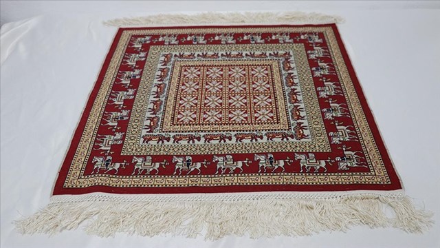 Enstitüde görevli usta öğretici Fehmiye Bozkurt tarafından günde 10 saat çalışılarak yaklaşık 2 ayda bitirilen halı, burada sergilenecek.