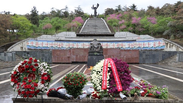 Gürcistan Cumhurbaşkanı Salome Zurabişvili, Başbakanı Giorgi Gakharia ile Parlamentosu Başkanı Arçil Talakvadze, ayrı ayrı parka gelerek Meçhul Asker Anıtı'na çelenk bıraktı.