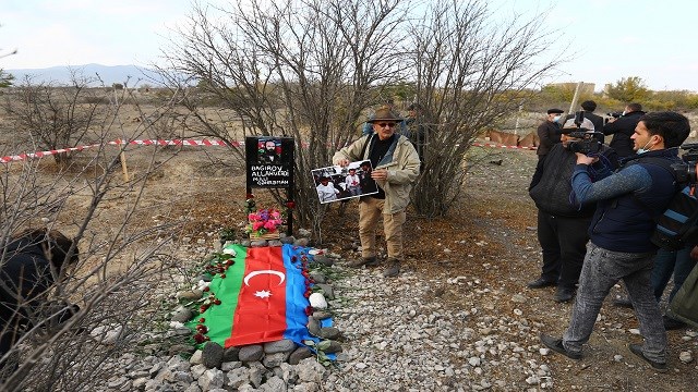 Azerbaycan milli kahramanının fotoğrafını kabrine bıraktı