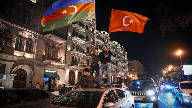 Beyazıt Meydanı'na ellerinde Azerbaycan ve Türk bayrakları ile gelen grup burada, "Karabağ Azerbaycan'dır", "Karabağ bizimdir, bizim olacak" sloganları attı.