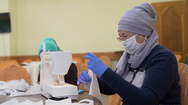 Türkistan Valiliğinden yapılan yazılı açıklamaya göre, bölge öğretmenleri, eczanelerdeki maske eksikliği nedeniyle başlattıkları çalışma kapsamında, yüz maskeleri dikiyor ve halka ücretsiz dağıtıyor.