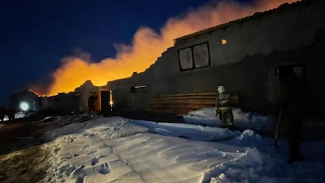 Kazakistan’ın Türkistan bölgesinde alt katında küçükbaş hayvanların bulunduğu çiftlik binasında depolanan samanlar yangının hızla yayılmasına neden oldu.
