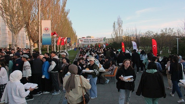 KTMÜ Cengiz Aytmatov Kampüsü'nde fakülteler ile yurt binaları arasındaki sokakta onlarca masa kuruldu, Kırgız ve Türk bayrakları ile "Sokak iftarına hoş geldiniz" yazılı afişler asıldı ve bazı ağaçlar ramazan fenerleri ile süslendi.