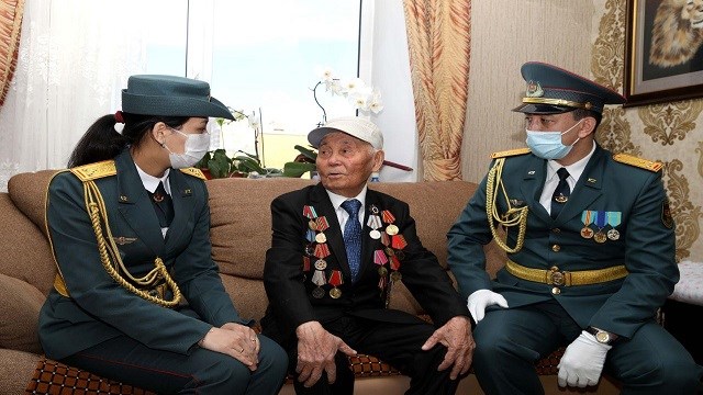 Başkent Nur Sultan'da askerler ve sanatçılar, savaş gazilerinin yaşadığı evlerin avlularında sıhhi önlemler alarak konserler verdi. Bazı gaziler, konseri dışarıda bazıları da evlerinin balkonlarından izledi.