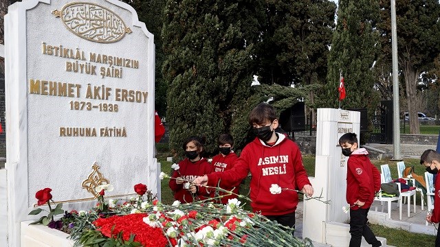 Eyüpsultan Asımın Nesli İmam Hatip Ortaokulu öğrencileri ise Mehmet Akif Ersoy'un kabri başında hatmi şerif okudu.