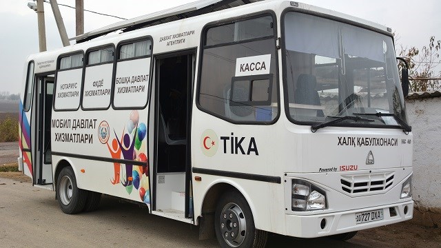TİKA'nın geçen yıl Özbekistan Adalet Bakanlığına bağlı Devlet Hizmetleri Ajansına hediye ettiği 20 mobil ofis aracı sayesinde ülkenin en uzak köşelerinde devlet hizmetleri verilebiliyor.