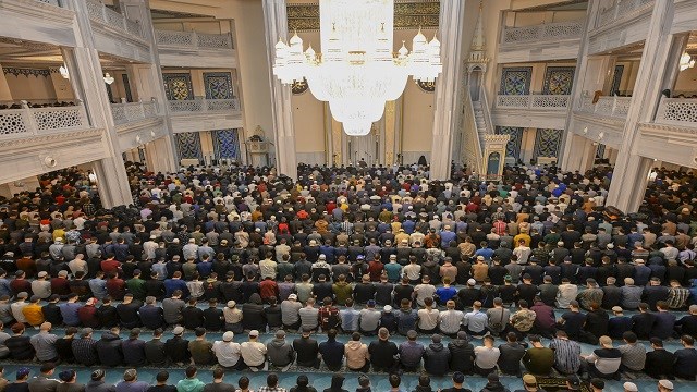Ramazanın başlaması nedeniyle, Moskova'da yaşayan Müslümanlar Merkez Camisi'ne akın etti.