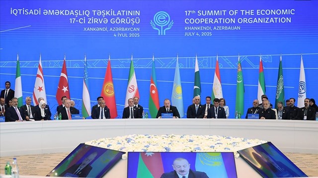 Aliyev, Azerbaycan'ın Hankendi kentinde düzenlenen Ekonomik İşbirliği Teşkilatı (EİT) 17'nci Zirvesi'nde konuştu.
