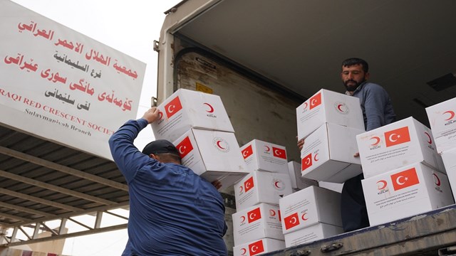 Türk Kızılay, Irak’ın Süleymaniye kentinin Çemçemal ilçesinde meydana gelen sel felaketinden etkilenenlere ulaştırılmak üzere 500 gıda kolisini Irak Kızılay'ın Süleymaniye Ofisi’ne teslim etti.