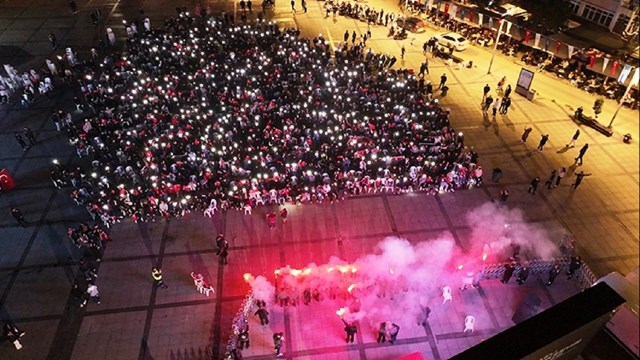 Hakemin bitiş düdüğüyle vatandaşlar, galibiyeti meşale yakarak ve ellerindeki Türk bayraklarını sallayarak kutladı.