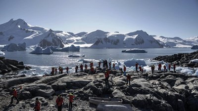 "Sinerjiyi Açığa Çıkarmak: Antarktika’ya Uzanan Ortak Bir Yolculuk" sergisinde konuşan …