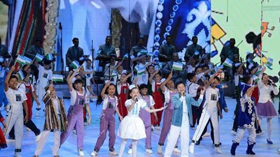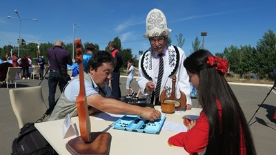 Kazakistan'ın başkenti Nur Sultan'da, farklı etnik grupların katılımıyla Halk Masa …