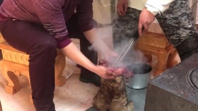 Moğolistan'da kesilen hayvanın içine kor halindeki taşlar yerleştirilerek uygulanan sıra …