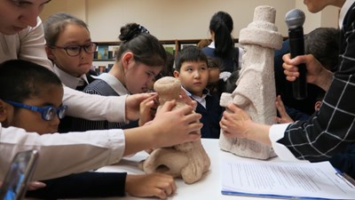 Kazakistan'ın başkenti Astana'da görme engelli çocukların yaptığı eserlerin de …