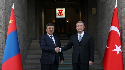 Milli Savunma Bakanı Hulusi Akar, Moğolistan Savunma Bakanı Enkhbold Nyamaa ile bir araya …
