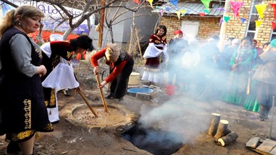 Özbekistan'da ilkbaharın gelmesiyle ülkenin dört bir yanında insanlar sümelek tatlısını …