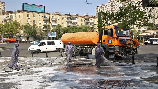Azerbaycan'da dezenfeksiyon çalışmaları sürüyor.