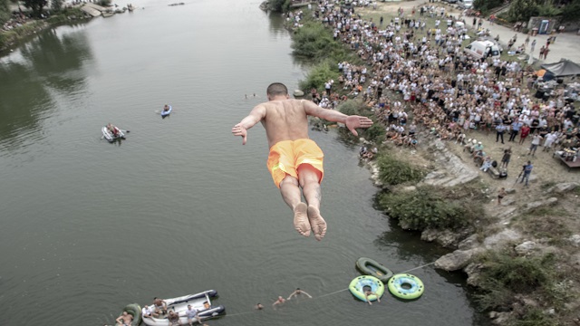 Bosna Hersek'in güneyindeki Mostar kentinde bu yıl 456'ncısı düzenlenen Geleneksel Mostar Köprüsü Atlayışları gerçekleştirildi.