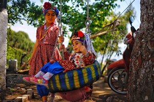 Fotoğrafta, Çomakdağlı yörük çocukları geleneksel kıyafetleriyle yer alıyor.