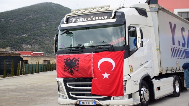 Türkiye'nin Tiran Büyükelçiliği koordinasyonunda bugüne kadar Arnavutluk'tan Türkiye'deki deprem bölgelerine 7 tır yardım gönderildi.