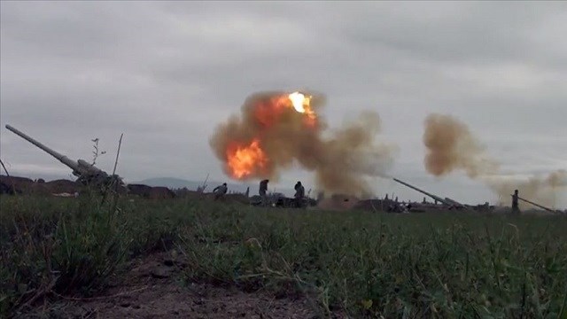 Terter Kapanlı köyünün girişinde Ermenistan'ın sivil yerleşim yerlerine düzenlediği saldırıları görüntüleyen İctimai televizyonu ekibi Ermenistan ordusu tarafından hedef alındı.