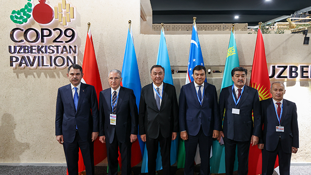Birleşmiş Milletler (BM) İklim Değişikliği 29. Taraflar Konferansı (COP29) kapsamında, Özbekistan Pavilyonu'nda düzenlenen toplantıya Çevre, Şehircilik ve İklim Değişikliği Bakanı Murat Kurum, COP29 Başkanı, Azerbaycan Ekoloji ve Doğal Kaynaklar Bakanı Muhtar Babayev, Özbekistan Ekoloji, Çevre Koruma ve İklim Değişikliği Bakanı Aziz Abduhakimov, Kazakistan Çevre ve Tabii Kaynaklar Bakanı Erlan Nısanbayev, Kırgızistan Doğal Kaynaklar, Ekoloji ve Teknik Denetim Bakanı Meder Maşiyev ve TDT Genel Sekreteri Kubanıçbek Ömüraliyev katıldı.