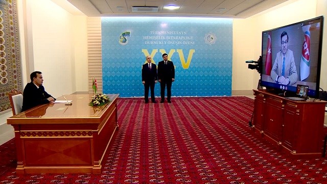 Türkmenistan’ın daimi tarafsızlık statüsünün 25. Yılını kutlama etkinlikleri çerçevesinde düzenlenen imza töreni, koronavirüs önlemleri kapsamında çevrimiçi olarak düzenlendi.