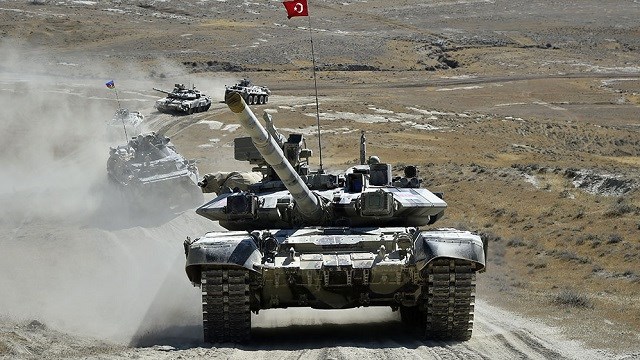 Azerbaycan Savunma Bakanlığından yapılan açıklamaya göre, tatbikat kapsamında araziye çıkan tank ve zırhlı araçlar çeşitli görevler icra ediyor.
