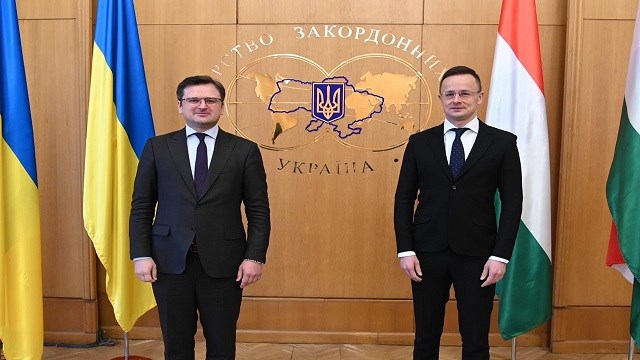 Kuleba ile Macaristan Dışişleri ve Dış Ticaret Bakanı Szijjarto, Ukrayna'nın başkenti Kiev'de ortak basın toplantısı düzenledi.
