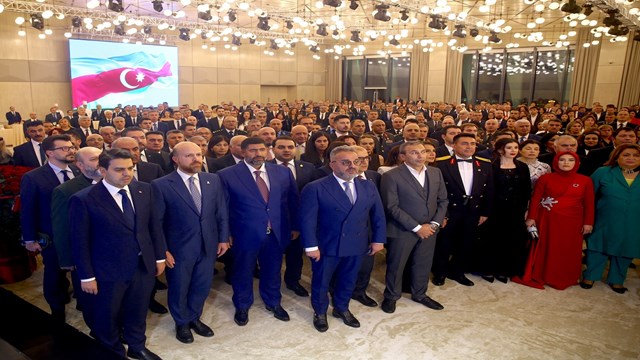 Türkiye'nin Bakü Büyükelçisi Birol Akgün'ün ev sahipliğinde Gülüstan Sarayı'nda gerçekleştirilen resepsiyona, Azerbaycan Milli Meclisi Başkanı Sahibe Gafarova, Türk İşbirliği ve Koordinasyon Ajansı (TİKA) Başkanı Abdullah Eren, Dünya Etnospor Birliği Başkanı Bilal Erdoğan, siyasetçiler, askeri yetkililer ile çok sayıda davetli katıldı