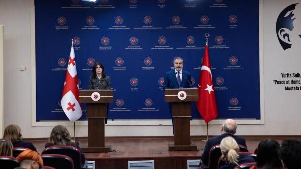 Хакан Фидан - Ботчоришвили пресс - жыйыныФидан Грузиянын тышкы иштер министри Мака Ботчоришвили менен борбор шаар Анкарада тышкы иштер министрлигиндеги жолугушуудан кийин өткөрүлгөн пресс…