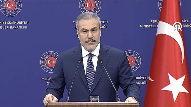Хакан Фидан борбор шаар Анкарада Албаниянын Европа жана тышкы иштер министри Игли Хасани менен жолугушкандан кийин биргелешкен маалымат жыйынын …
